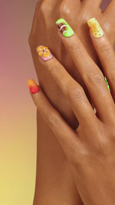 Add a burst of vibrant charm to your nails with Colorful Flower Whim. Featuring richly saturated hues and lively floral designs, this manicure brings a playful, avant-garde touch to your style. Perfect for those who love to stand out with bright, cheerful colors and artistic flair.