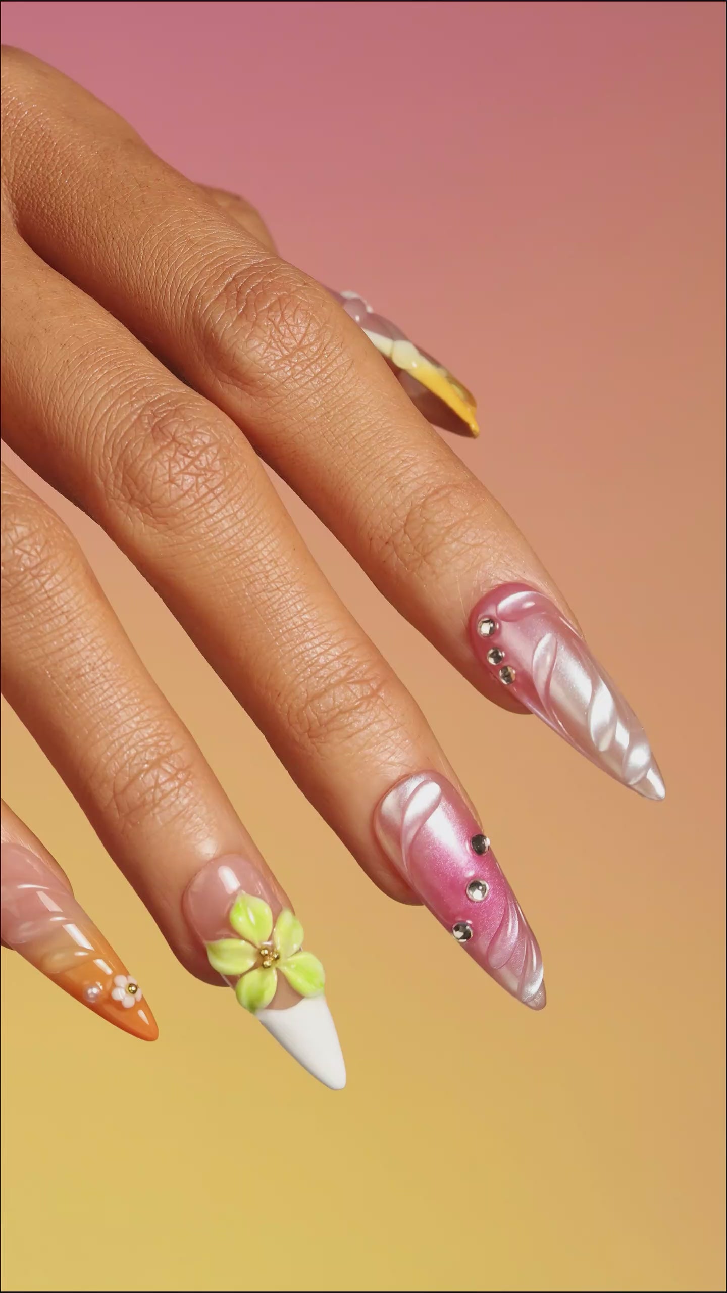 Bring a playful spirit to your nails with the Flower - Ripple Galaxy design. This warm-toned, French-inspired floral manicure captures a relaxed vacation vibe with a soft and gentle touch. Perfect for adding a fun, fresh look that feels both elegant and inviting.